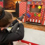 Livré avec 2 carabines à plomb, vous devrez viser et abattre les ballons qui volent. Sans danger grâce à une importante surface de protection (2m40 x 2m de hauteur), ce jeu de tir à la carabine est fourni avec la table de support et sa décoration, et un gonfleur intégré (un astucieux système vous permet de gonfler les ballons par l’arrière et les stocker dans un espace disposant d’une ouverture sur l’avant).