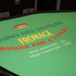 Le jeu est très simple sur cette table de casino : le croupier vous fait goûter un fromage alors que vous dissimuler votre nez et votre regard derrière une plaque de bois. Après avoir analysé ce fromage, vous devez déterminer son nom. Est ce un camembert, un brebis, un maroilles, de la mimolette ?