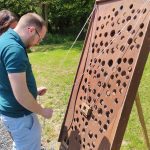 Prenez les cordelettes et dirigez le support qui maintien la bille, pour la faire passer entre les nombreux trous.