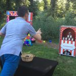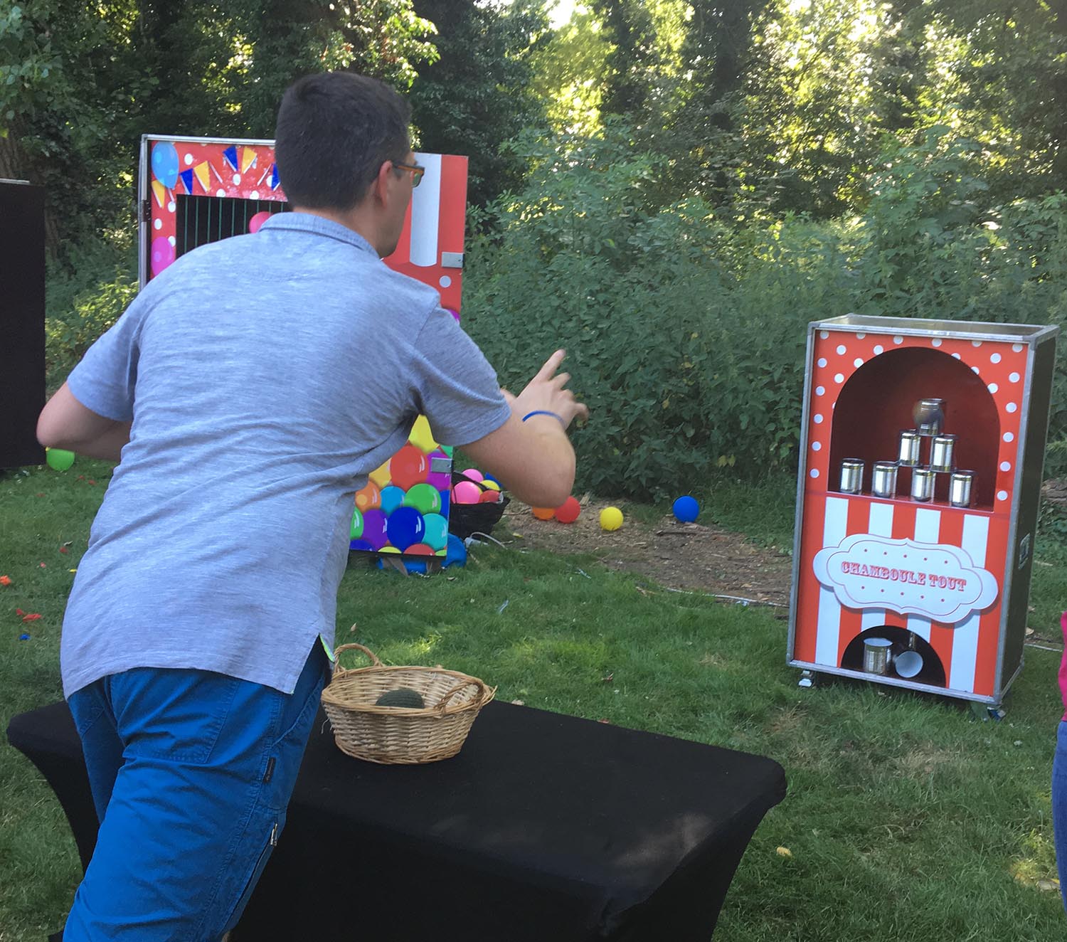 chaque joueur dispose de 3 boules pour tenter de faire tomber le maximum de boites de conserve. Le joueur suivant devra faire mieux